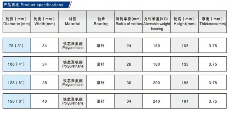 產(chǎn)品特點(diǎn):固體焊接技術(shù),精密鑄鐵輪從而增強(qiáng)耐用性,聚氨酯粘接,嵌入式球軸承增強(qiáng)旋轉(zhuǎn)功能。